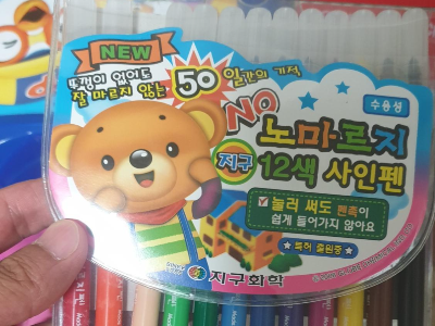 노마르지 12색 사인펜인데 뚜껑을 열어나도 잘 마르지 않아서 색칠하기가 좋네요. 펜촉도 넓은편이라 넓은면을 색칠하기에 딱입니다.