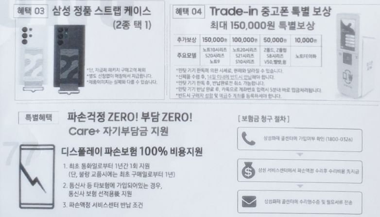 다음으로는 그동안 핸드폰 액정 2번이나 깨 잡순 아들의 전적을 생각하면 이번에도 액정이 무사하지 못할 듯 하니 액정 교환 시 자부담 80,000원 1회 지원되니 이것 또한 80,000원 세이브 생각합니다.