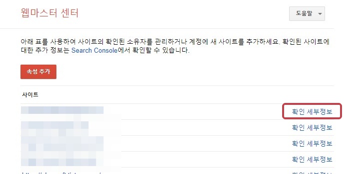 사이트 목록에서 우측 확인 세부정보를 클릭합니다.