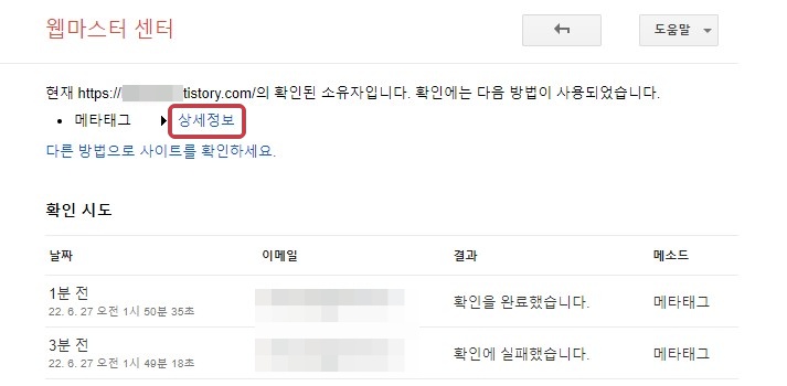 추가로, 기존에 메타태그를 이용하여 사이트 소유권 등록하셨던 분들을 위해 메타태그 다시 확인하는 방법입니다.
