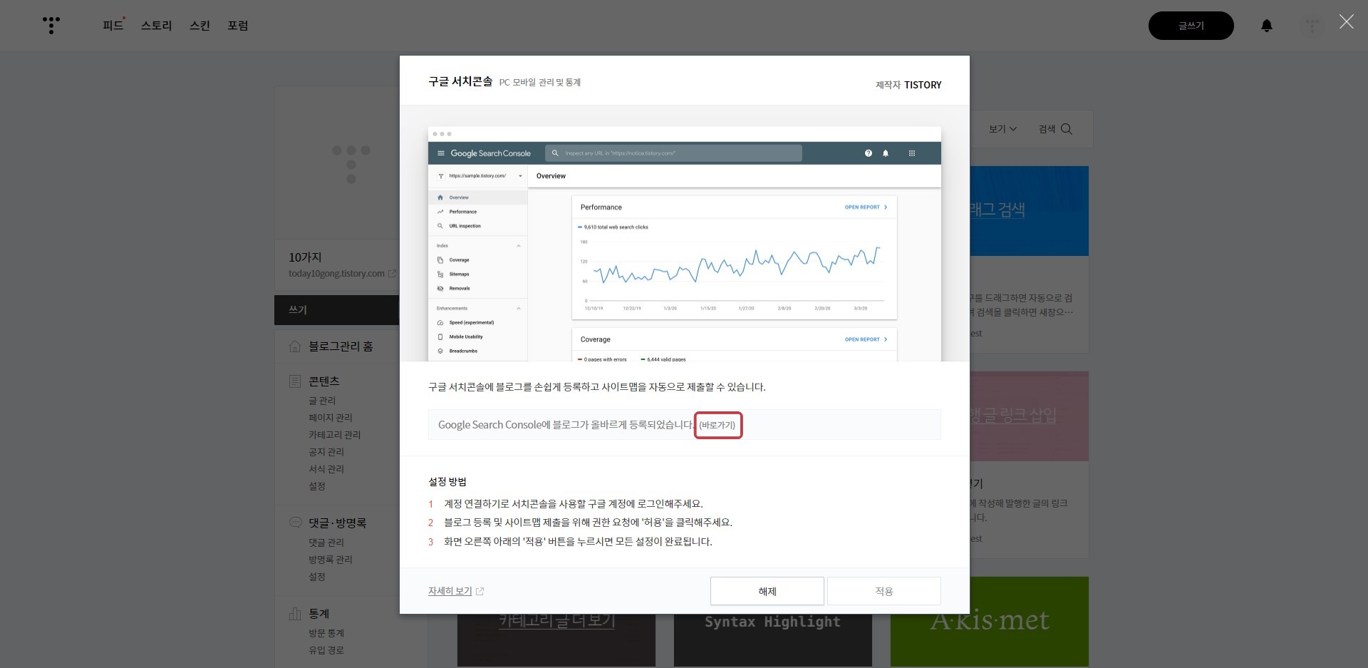 티스토리 블로그를 운영하면서 작성한 포스팅을 구글 검색에 노출시켜 트래픽을 발생시키려면 구글 서치 콘솔에 자신의 사이트를 등록해야 합니다. 티스토리는 구글과 협업으로 다양한 플러그인을 제공하고 있으니 어렵지 않게 등록할 수 있습니다.