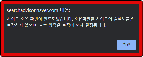 사이트 소유 확인 완료 메시지가 뜨면 됩니다.