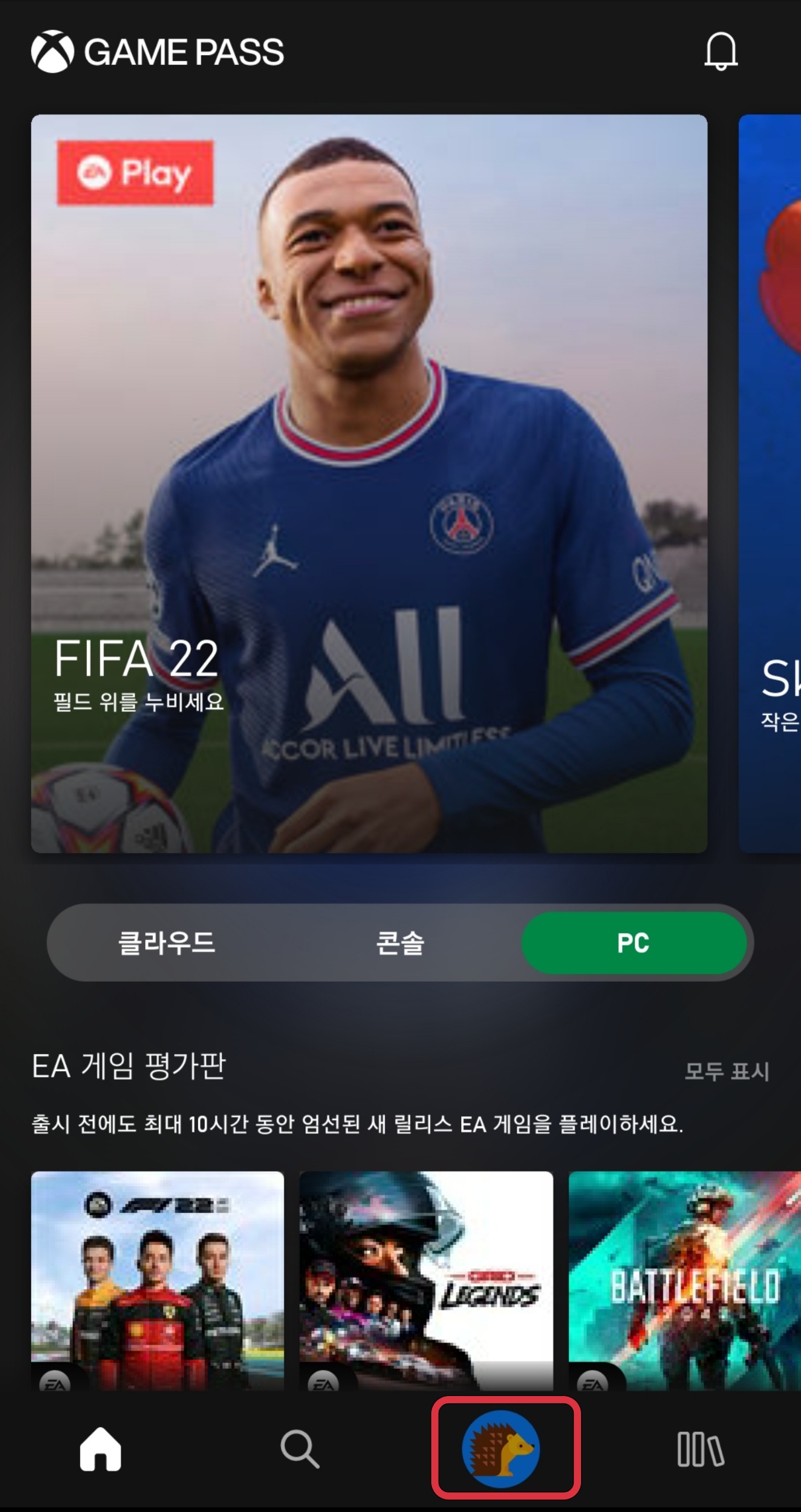 PASS 인증을 마치면 우측처럼 정상적으로 로그인되어 프로필 표시가 나타납니다. 어플에서는 게임 정보나 새 게임 출시 소식 등을 확인할 수 있고, 엑스박스 게임 패스 가입은 PC를 통해 진행해야 합니다.