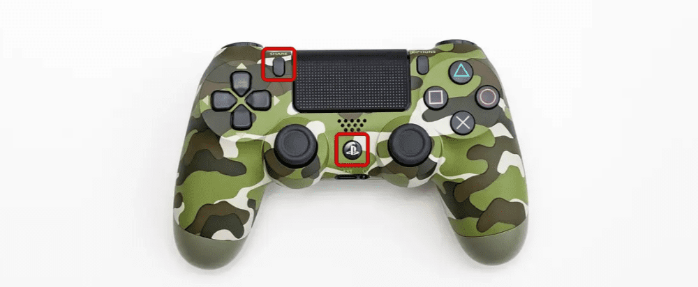 SHARE 버튼과 PS버튼을 동시에 길게(5초간) 누르고 있으면 듀얼쇼크 4 라이트 바 불빛이 빠르게 깜박이며, 장치를 검색 중인 상태입니다.