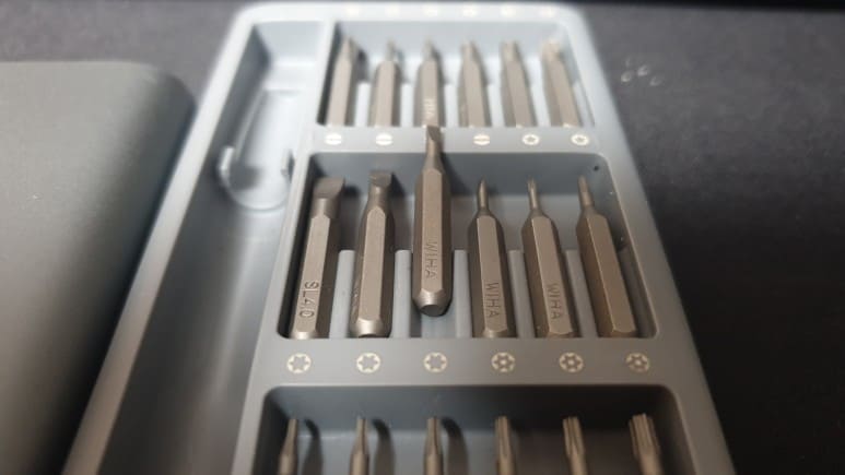과거에 2인치, 3인치 드론 조립할 때, 대부분 1.5T 육각 드라이버비트를 사용했습니다. 다이소에서 판매하는 5,000원 세트는 몇 번 돌리면 금방 닳아 없어져 사용할 수 없게 되었는데, 이 샤오미 위하 드라이버 세트는 드론을 수없이 조립하고 수리하면서 수백 번 사용했지만 여전히 비트가 상태가 멀쩡합니다.