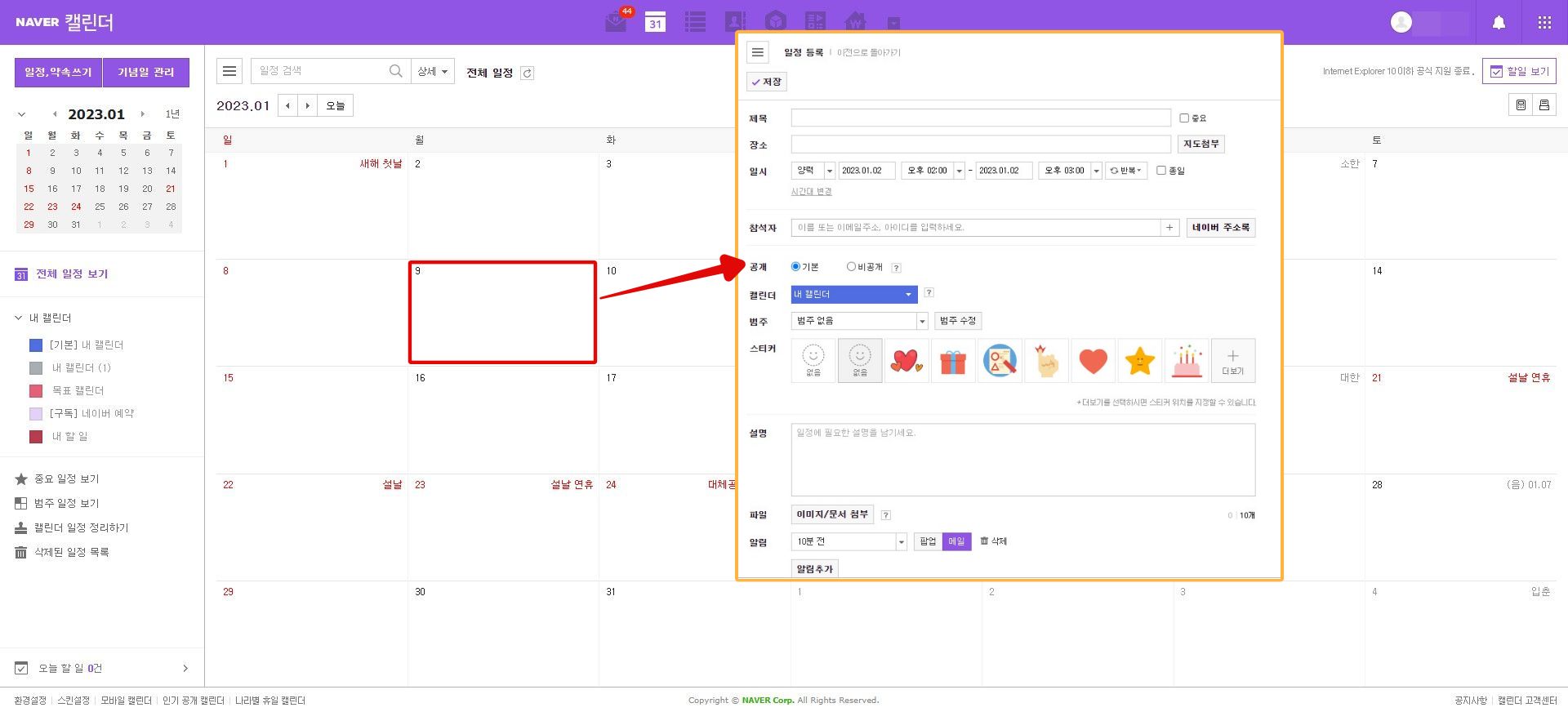어느덧 2022년이 얼마 남지 않았네요. 올해도 코로나와 장마, 태풍으로 많이 힘들었지만 더 좋은 내년을 기대해봅니다. 다가오는 2023년을 위해 미리 캘린더를 준비하겠습니다. 좋아하는 연예인이나 멋진 일러스트 이미지를 활용해서 나만의 캘린더를 만들 수도 있겠지만, 여기서는 네이버 캘린더 웹에서 아주 간단하게 2023년 달력을 출력해 보겠습니다. 일정 관리를 위해 메모 가능한 달력을 출력하려는 분들이라면 이제 내년 달력을 구하려고 인터넷 검색으로 여기저기 방문할 필요 없습니다. 생일, 결혼기념일 등 특별한 날은 직접 장식할 수 있어 더욱 특별합니다.