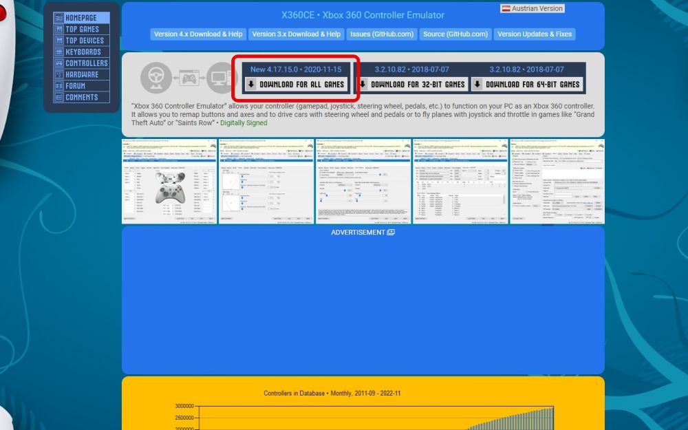 ① 'Xbox 360 컨트롤러 에뮬레이터' 다운로드 합니다. 관련 홈페이지에 접속하거나 아래 다운로드 링크를 클릭하세요.