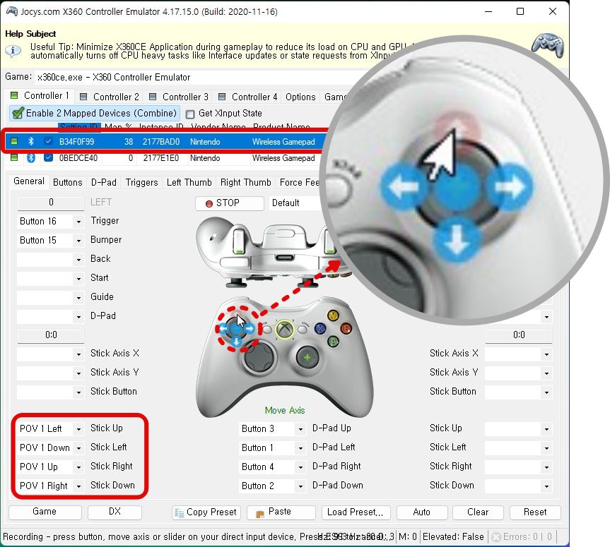 이렇게 조이콘 L/R 모두 페어링 되었다면 이제 PC에서 각각의 조이콘을 사용할 수 있습니다. 닌텐도 스위치 에뮬레이터인 YUZU에서는 조이콘 L/R을 따로 인식하여 사용할수 있게 지원하고 L/R이 합쳐진 프로 컨트롤러로도 인식하기 때문에 바로 사용 가능합니다.