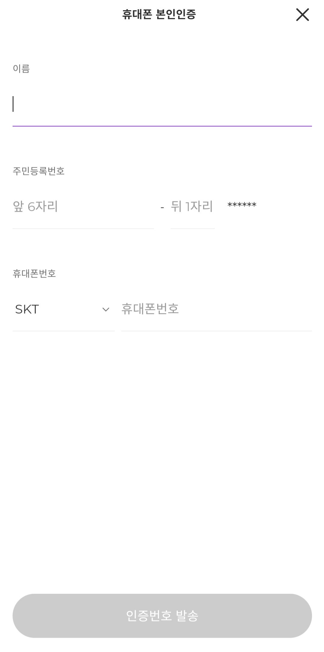2. 간편 등록으로 회원 가입합니다. 휴대폰 본인 인증을 진행하세요.