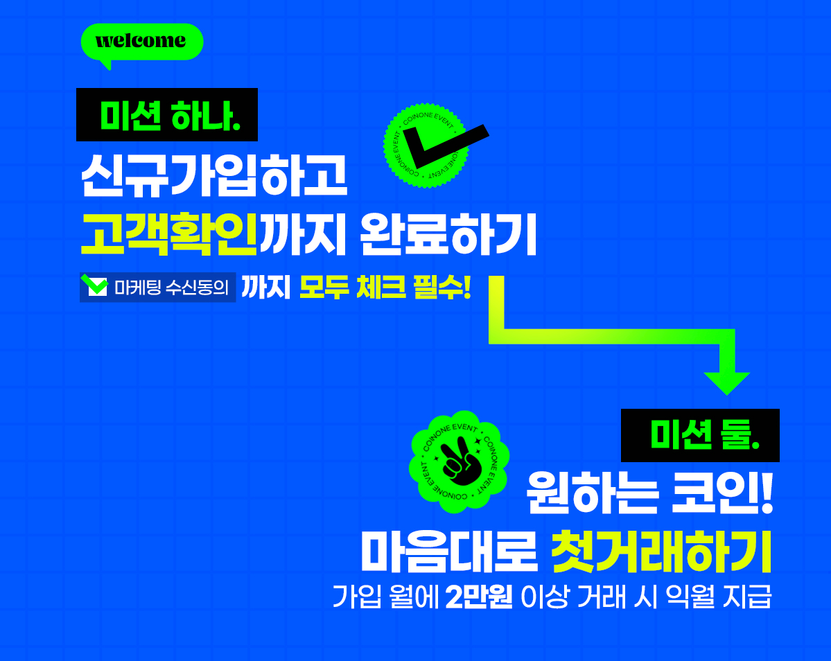 코인원에 회원가입을 하고 코인원 이벤트 미션을 완료하면 가입축하금 2만 원을 받을 수 있습니다.
