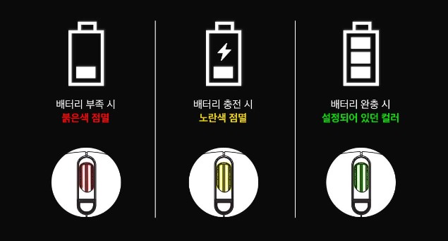 USB C타입 유선 케이블은 유선으로 사용 시 유연성을 높이기 위해 고무코팅 케이블이 아닌 파라코드 케이블을 사용하여 절연체가 없어 유연한 이동이 가능합니다. 배터리가 없을 때는 USB 케이블을 연결하면 바로 유선모드로 사용하면서 동시에 배터리 충전을 할 수 있습니다.