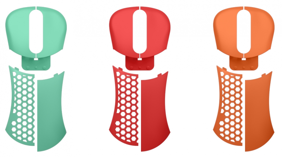 클릭 커버와 그립 커버는 본체에 장착된 네오디뮴 자석과 자력으로 단단하게 고정되어 별도 공구 없이 손쉽게 탈부착이 가능하도록 되어 있어 사용자 취향에 맞게 커스터마이징이 가능합니다. 기본 팜 커버 외별도 구매 가능한 3가지 컬러(민트, 오렌지, 레드)로 교체할 수 있습니다.