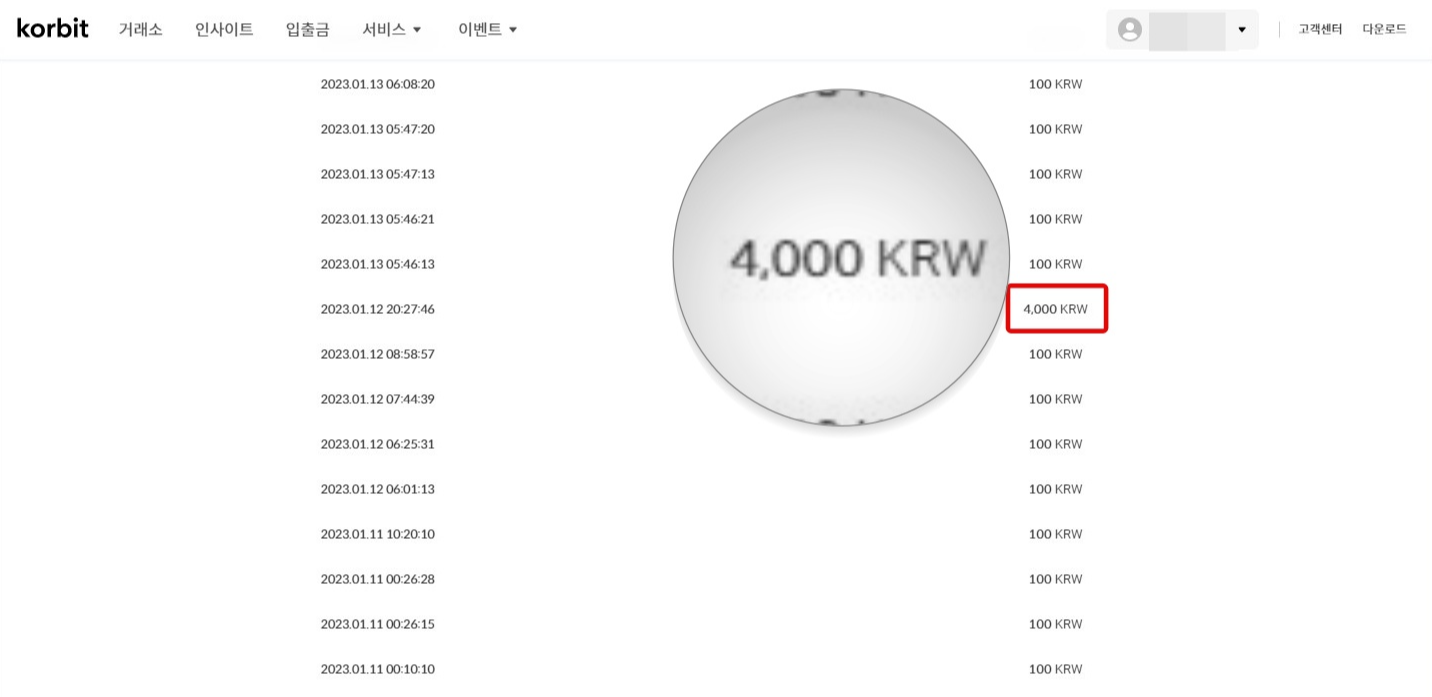 2) Web: 코빗 웹 > 상단의 서비스 메뉴 > 데일리 보너스