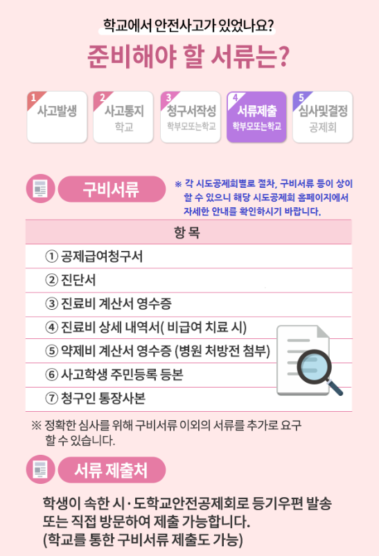 학교 안전사고 보상 신청 시 준비해야 할 서류는 다음과 같습니다.