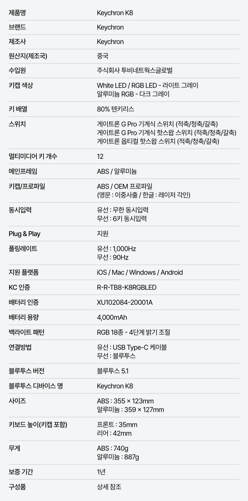 키크론 제품은 동일 라인업에도 여러 가지 옵션을 제공하기 때문에 구매 시 꼼꼼하게 살펴봐야 합니다. K8 제품에도 K8, K8 PRO, K8 레트로등 다양한 제품군이 존재하고 또 여기에 여러 옵션을 제공합니다.