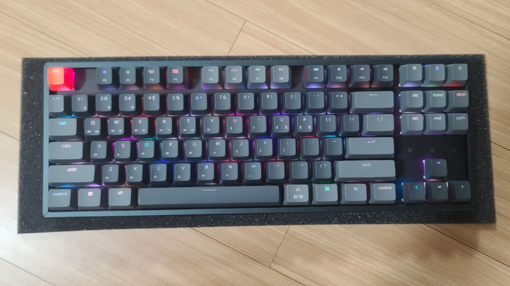 지금 사용하는 키보드는 듀가드 x싱크웨이 컬래버레이션 ‘토체프/토체티 텐키리스 갈축 키보드입니다. 저에게 있어 사용하는데 전혀 부족함이 없는 키보드지만, 아쉬운 점은 LED의 부재와 유선으로 인해 지저분한 선이 거슬립니다. 그래서 이번에 키크론 행사하길래 텐키리스 제품인 K8 알루미늄 RGB 핫스왑 적축 키보드를 새로 구입하게 되었네요. 디자인으론 K8 레트로 제품에 눈이 더 갔지만, 레트로 제품엔 RGB가 없어 이 제품을 선택했습니다.