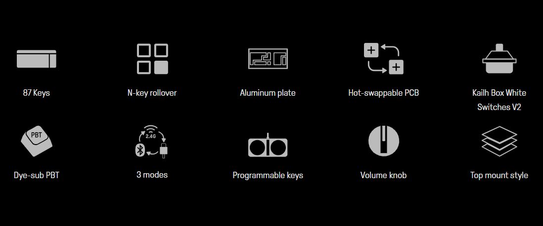 공간 활용이 좋은 텐키리스 87 키를 채택한 8Bitdo의 레트로 키보드는 강력한 배터리 수명을 자랑합니다. 2000mAh 리튬 이온 배터리가 내장되어 있어 4시간 충전으로 최대 200시간의 사용이 가능합니다. 블루투스 연결 외에도 2.4 GHz 동글을 이용한 연결이 가능하며 2.4G USB 수신기는 마그네틱 방식으로 본체에 수납할 수 있습니다. 물론, 케이블을 연결하여 유선으로도 사용할 수 있습니다. 또한 Kailh 박스 스위치를 사용하여 탁월한 키감을 제공하며, 핫스왑이 가능한 PCB로 개성적인 버튼으로 꾸밀 수 있습니다.