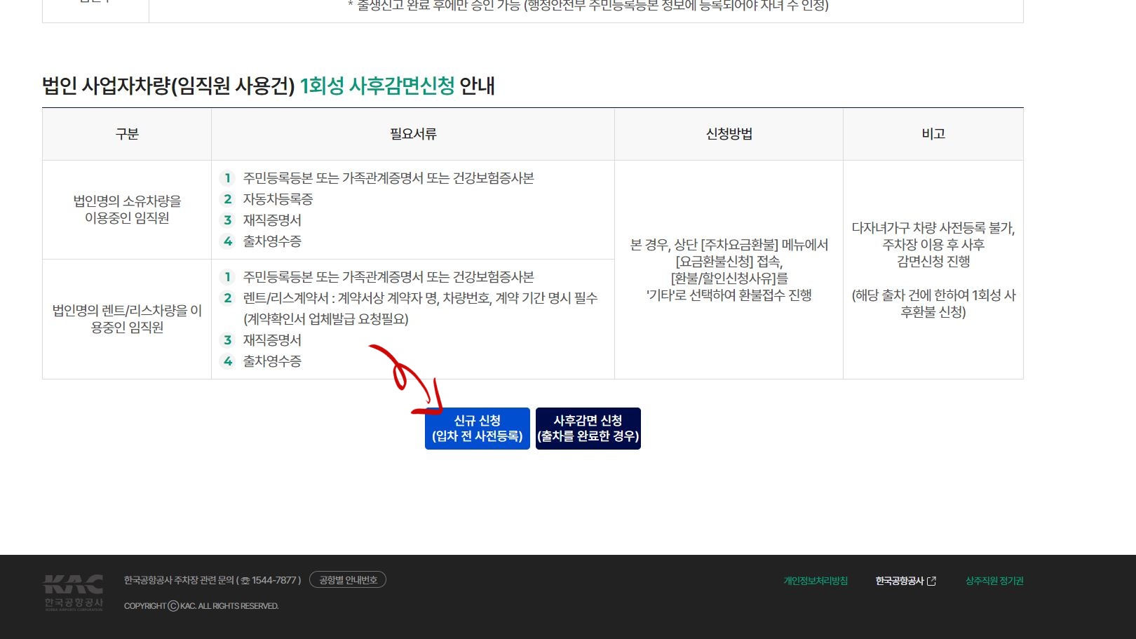 | 법인명의 렌트/리스차량을 이용중인 임직원 | 1. 주민등록등본 또는 가족관계증명서 또는 건강보험증사본 2. 렌트/리스계약서 : 계약서상 계약자 명, 차량번호, 계약 기간 명시 필수(계약확인서 업체발급 요청필요) 3. 재직증명서 4. 출차영수증 |