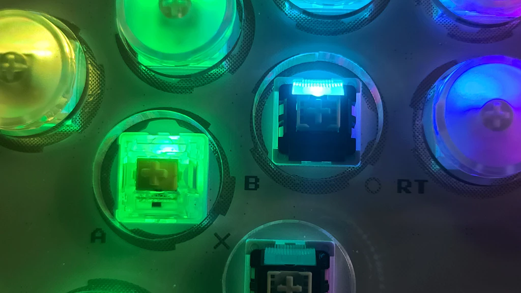 RGB 가 더 잘 투영할 수 있는 투명한 스위치를 장착해 봤습니다.