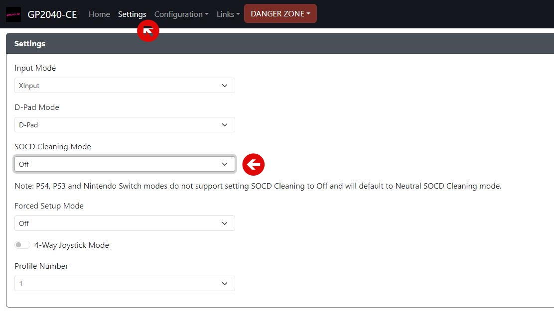 설정 페이지에서 Settings에서 SOCD Cleaning Mode를 Off로 설정하고 저장하고 재부팅하면 됩니다.