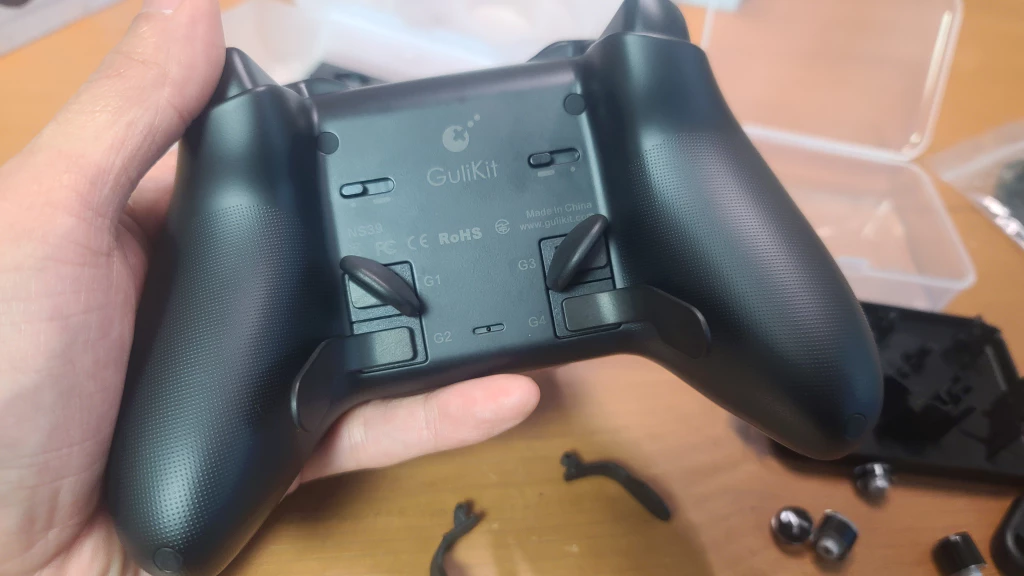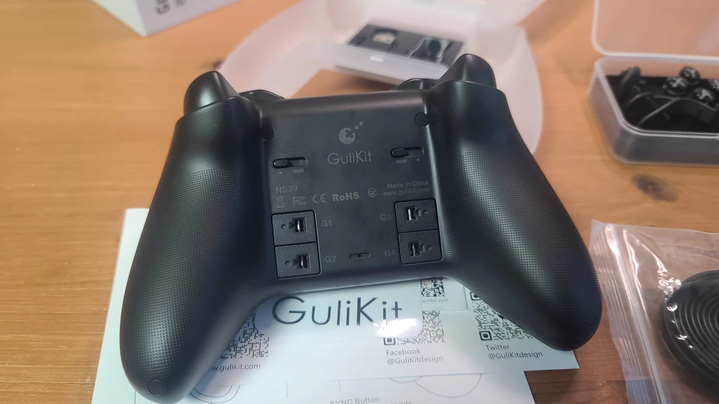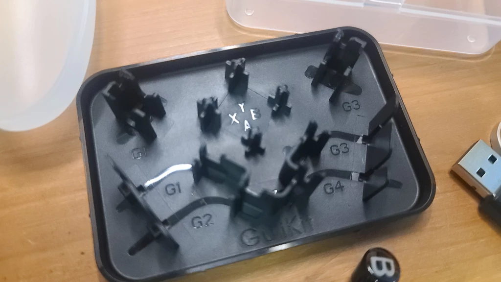 잠시 수신기와 버튼 스왑용 클립등을 자세히 살펴보면 GuliKit 로고가 각인되어 있는걸 보실 수 있습니다. 또한, 백버튼 케이스에도 각 버튼의 위치가 새겨져 있는데, 이런 사소한 것까지 신경 쓴 모습이 만족스럽습니다.