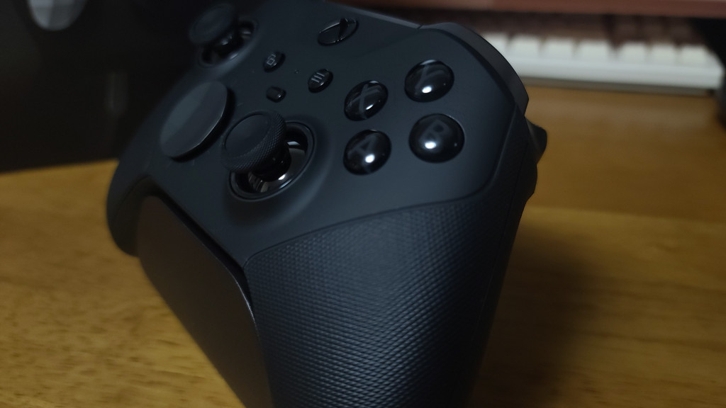 엑스박스 엘리트패드 2의 디자인은 한 마디로 '고급' 그 자체입니다. 검은색의 무광 마감과 섬세한 디테일은 패드를 손에 들기도 전에 고급스러움을 느끼게 만듭니다. 특히 패드의 묵직한 무게감은 사용자가 더 높은 퀄리티의 제품을 사용하고 있다는 느낌을 줍니다. 묵직하지만 무게 중심이 잘 잡혀있어 장시간 사용해도 전혀 피로감이 느껴지지 않습니다. 그래서 저는 이 묵직함이 상당히 마음에 듭니다.