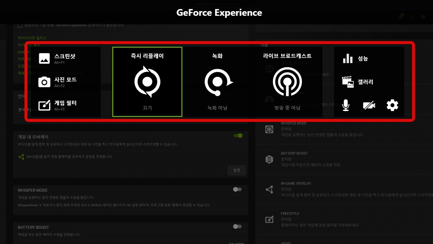 이제 GeForce Experience를 활용할 준비가 완료되었습니다! 다양한 기능을 통해 게임 경험을 한층 업그레이드해 보세요.