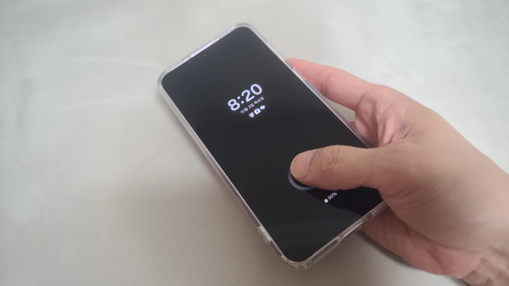 필름을 붙이고 나서 걱정되는 또 한 가지는 바로 터치감과 지문 인식이죠. 그런데 이 필름은 부드러운 터치감을 자랑합니다. 게다가 지문 방지 기능까지 있어서 화면이 깔끔하게 유지되니 기분도 좋더라고요. 지문 인식도 아주 잘 돼서 잠금 해제할 때 불편함이 전혀 없었습니다.