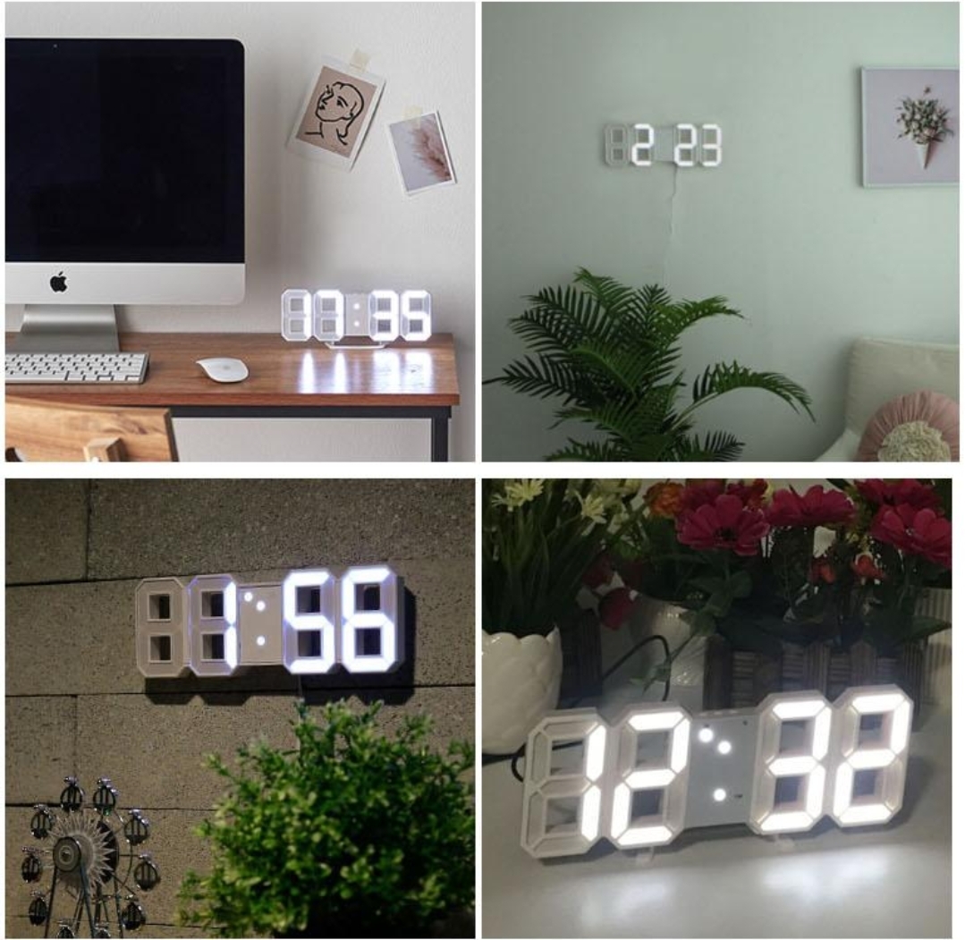 3D 디지털 LED 시계, 화이트