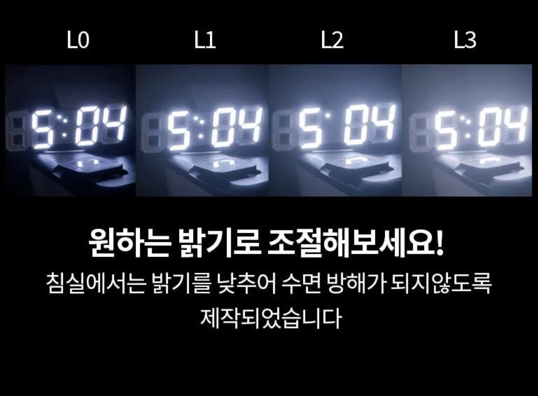 제가 LED 시계를 고를 때 가장 우려했던 점이 바로 '밤에 너무 밝지 않을까?' 하는 점이었어요. 하지만 이 제품을 써보고 그 걱정이 싹 사라졌습니다. 총 3단계 밝기 조절이 가능할 뿐만 아니라, '나이트 모드'가 정말 유용했거든요.