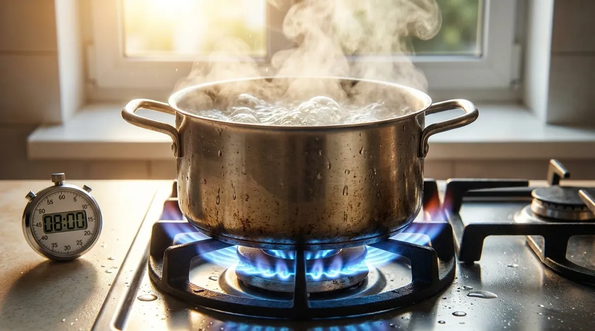 생수 900ml를 붓고 가장 센 불을 켭니다. 국물이 팔팔 끓기 시작하는 시점부터 정확히 8분 동안 더 끓여주세요. 이 8분이라는 시간이 고기의 식감과 국물의 농도가 가장 완벽해지는 골든타임입니다.