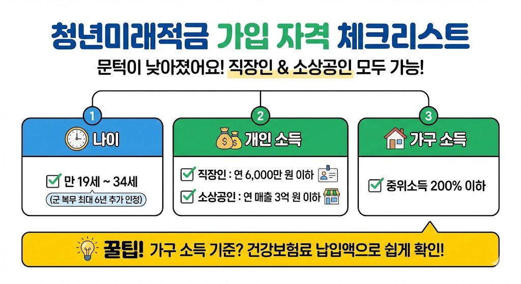 이번에는 문턱이 정말 낮아졌더라고요. 특히 월급쟁이 직장인뿐만 아니라 내 가게를 운영하는 사장님(소상공인)들도 당당하게 가입할 수 있다는 게 매력 포인트예요!
